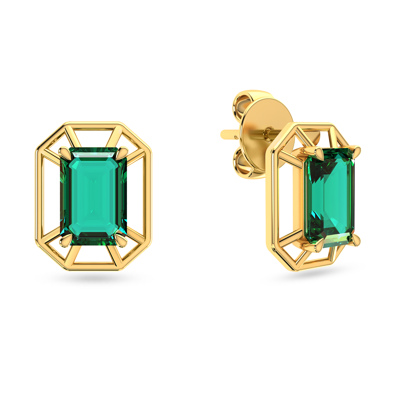 The perfect choice to add dazzle and color to any outfit, these striking stud earrings will brighten any look. Beautifully crafted in 18-karat solid yellow gold, they sparkle with 0.40-carat baguette-shaped green emeralds. We suggest pairing these earrings with a matching emerald necklace or ring.